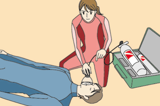 減圧障害のファーストエイドで酸素供給を行うために必要な知識とスキルを 習得していただきます。 受講後は自信を持って事故に対応いただけます。